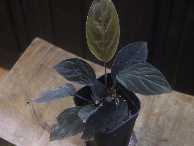 Homalomena humilis "黒葉赤輝" from Entikong【HW0725-9】