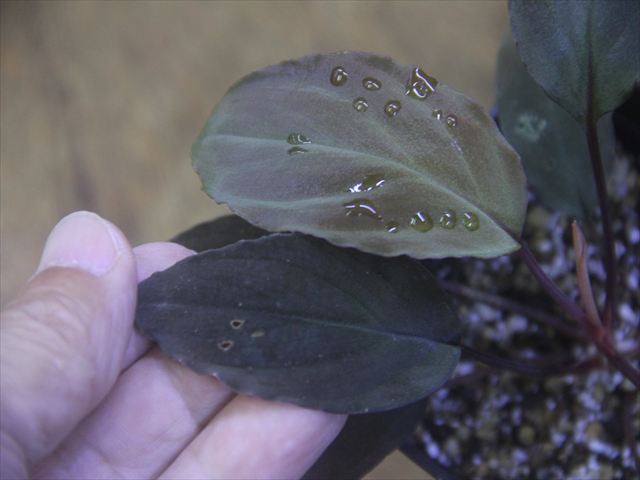 赤系の葉で、葉裏も赤いラメ(赤輝)が入ります。